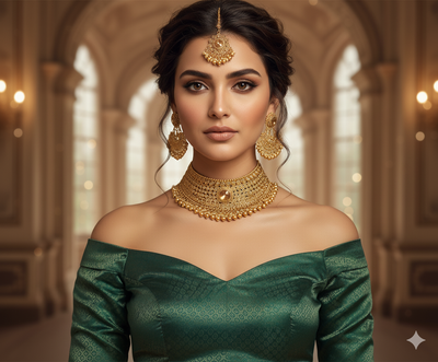 Luxury Rose Gold Plated Bridal Choker Necklace Set with Earrings & Maang Tikka